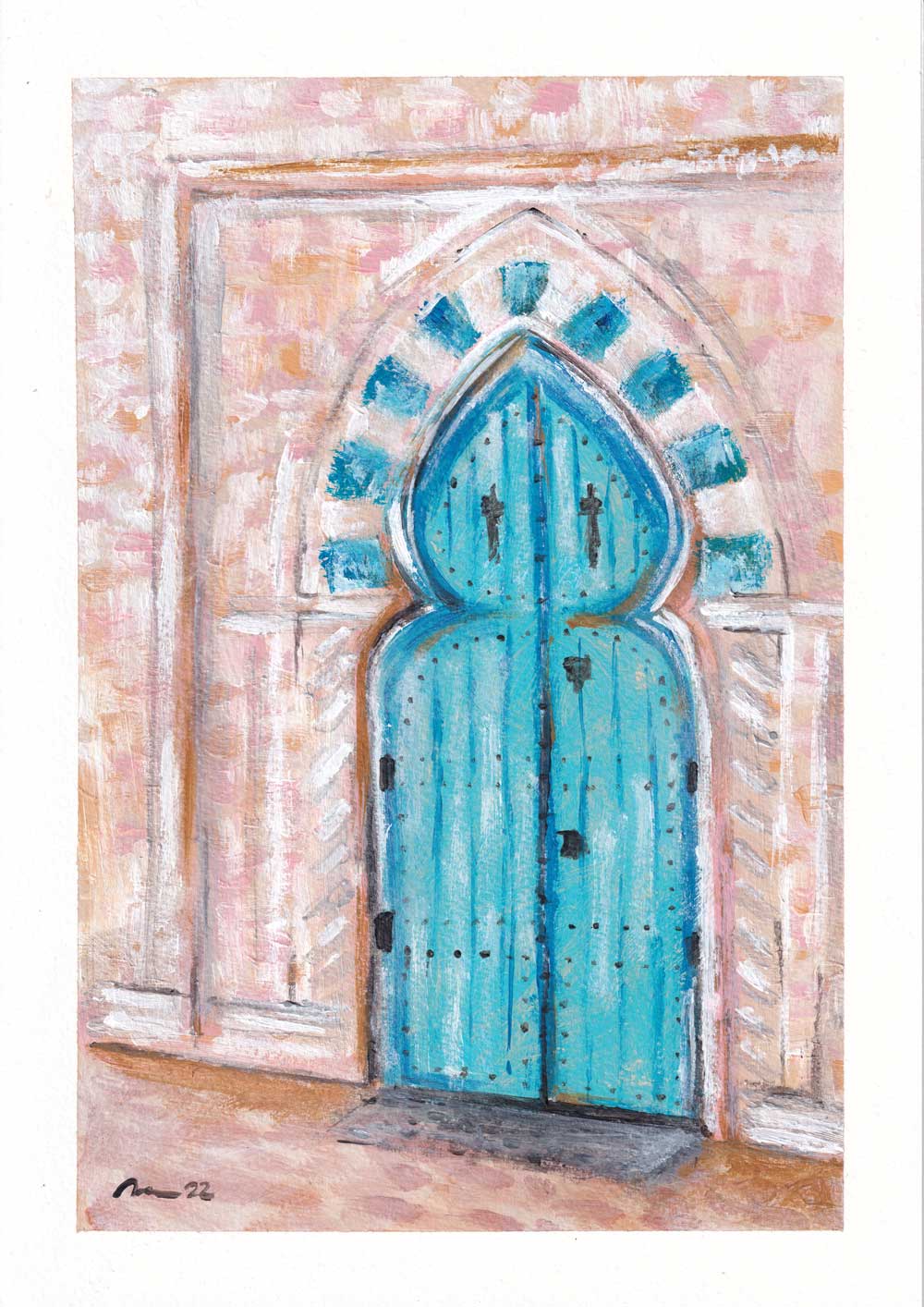 This piece was painted using acrylic and is based on a door seen in Morocco – SOLD