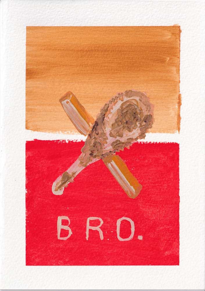 Painted in acrylic, gold and red paint, reminiscent of times at the chicken shop.