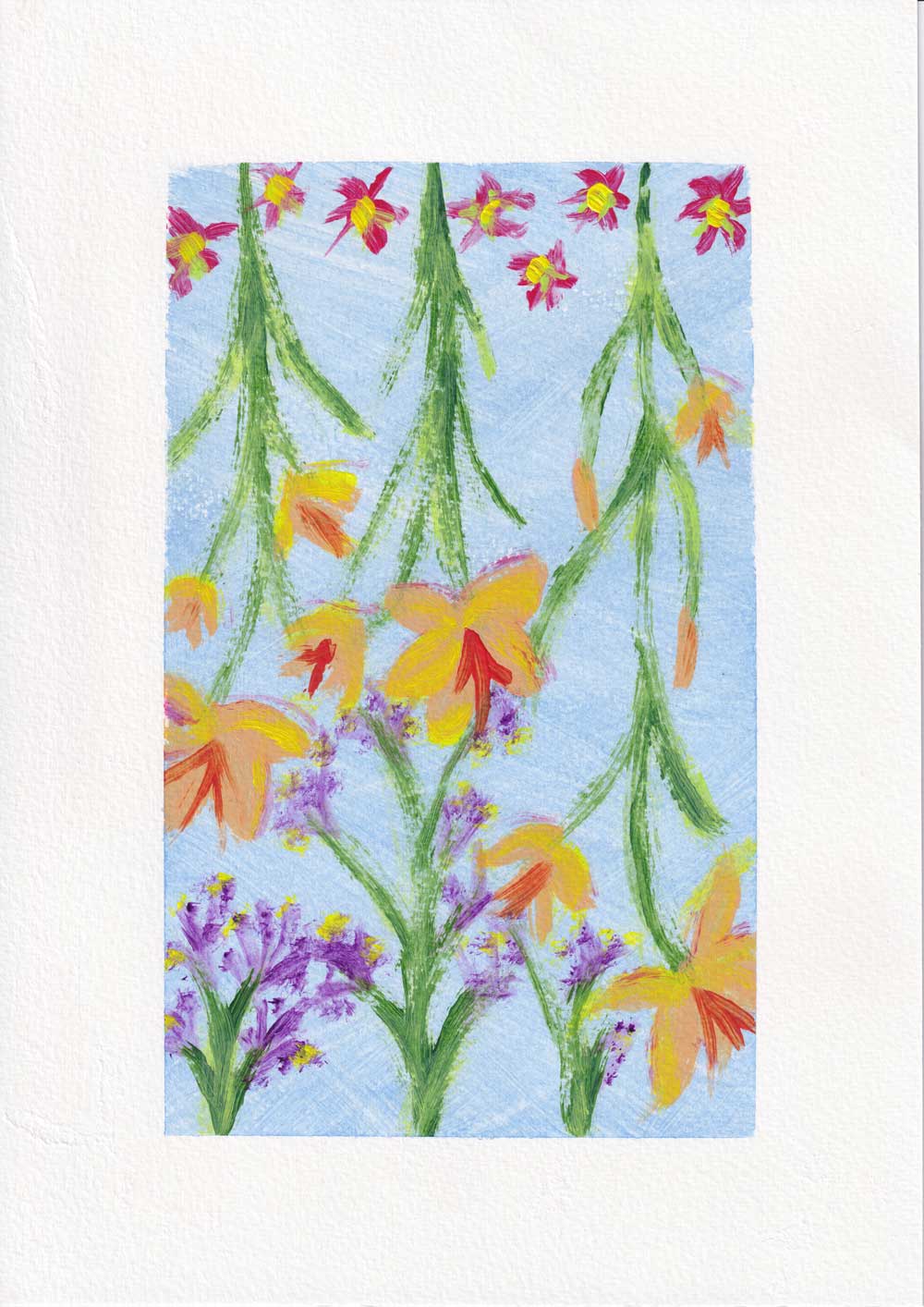 A Symphony of Colours: From delicate watercolours to bold acrylic strokes, each card is a celebration of colour, catering to those seeking visually stunning, artistic, and colourful greetings – see the details above for each art card piece.