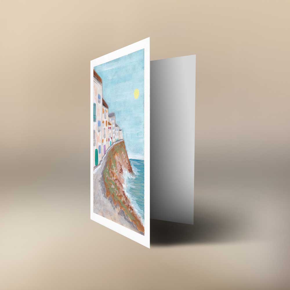 This piece was painted with the gentle warm sea breeze of an Indian summers afternoon in Devon in mind, An easy on the eye piece, that would be perfect for those that love the Devon coastline, perhaps a perfect card to send someone who you want to invite or feel nostalgic about a moment from the past..