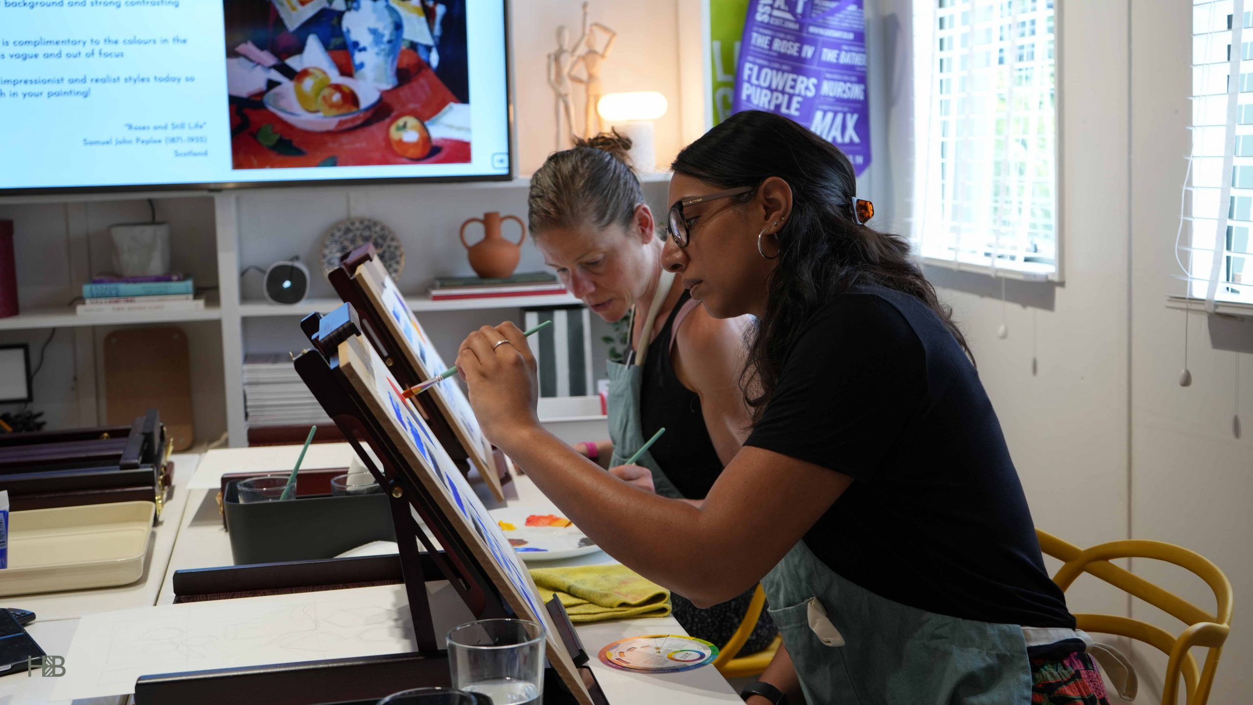 We will then begin painting and starting develop the layers, textures, light and shadows and work with complimentary colours, revisiting skills from day 1 and applying it to the composition.