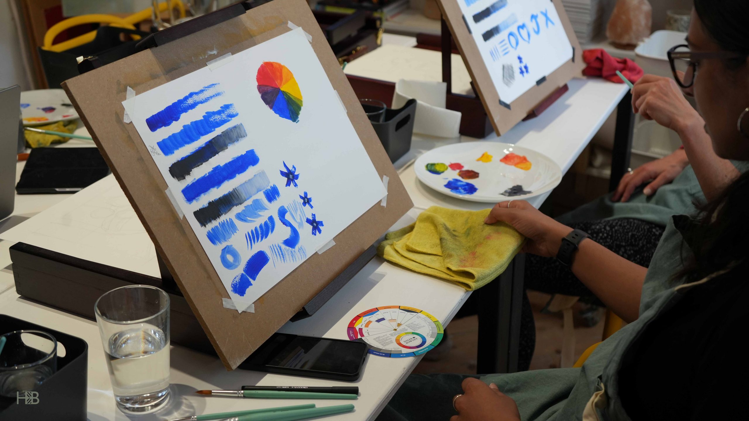 We’ll start by learning about the colour wheel, including primary, secondary, and tertiary colours.